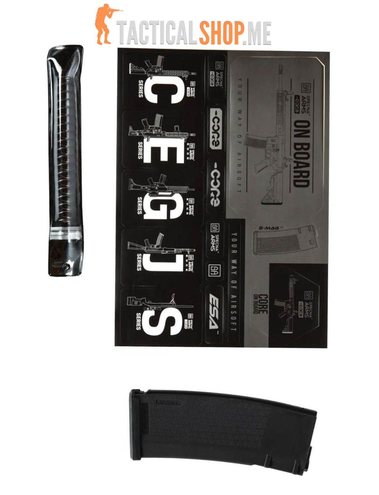 Ovaj airsoft set uključuje Specna Arms repliku SA-C09 CORE™, LiPo 7.4V bateriju od 1200mAh, mikroprocesorski punjač s LiPo balanserom, zaštitne naočare Phoes One i paket kuglica 0.20g.
