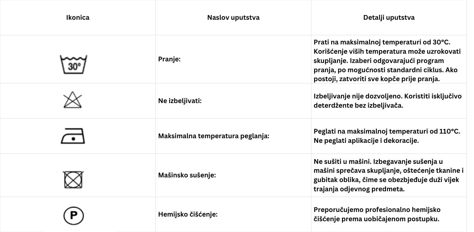 Instrukcije za pranje i održavanje